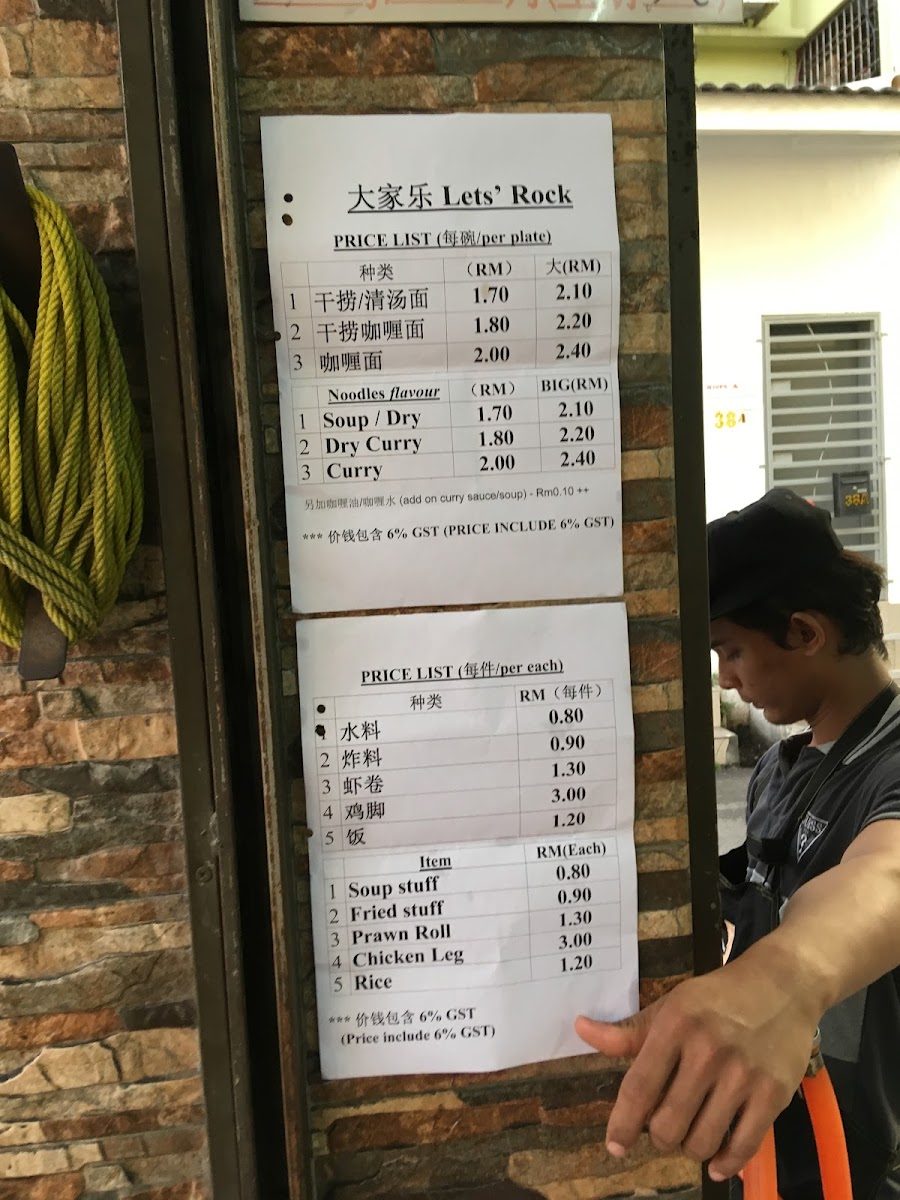 The menu at Let's Rock Restaurant offers a straightforward, comforting selection of Chinese noodle dishes and traditional beverages, ideal for those seeking a casual and hearty meal. Guests can expect simple yet satisfying options like Yong Tau Foo, Curry Fish Head, and freshly made fish balls, paired with familiar drinks such as iced coffee and hot tea.